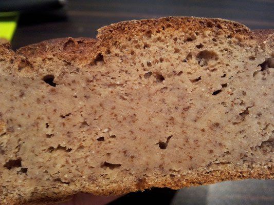 Der Grund dafür ist folgender: Unsere Brotteige enthalten aufgrund des hohen Ballaststoffgehalts sehr viel Wasser, von dem beim Backen einiges davon verdampfen soll. In einer Backform geht das Wasser nur nach oben raus, da die Seiten von der Form verschlossen werden. Das ist auch der Grund dafür, warum unsere Brote NICHT für einen Brotbackautomaten geeignet sind – diese Dinger sind einfach zu dicht verschlossen und das Wasser kann nicht raus! (Heissluftfritteusen hingegen eignen sich wunderbar, die blasen das Wasser wie ein Champion raus…)