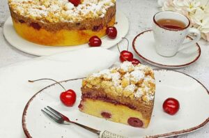 Einfach und schnell gemachter Kirschkuchen mit 3 Schichten und Streuseln. Pro Stück NUR 8g [...]