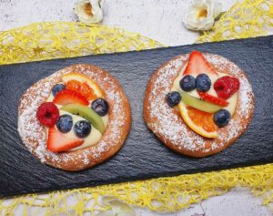 Bauernkrapfen aus dem Backofen mit Fruchtaufstrich, Proteindessert und Obst. Pro Stück ohne Deko NUR [...]