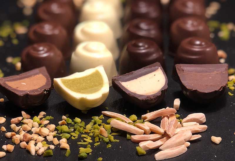 Gefüllte Pralinen in verschiedenen Sorten | über 90 % weniger verwertbare Kohlenhydrate als herkömmliche Pralinen | aus hochwertigen Zutaten wie Kakaobutter und Nussmus | Mit knackiger Hülle und cremiger Füllung | In liebevoller Handarbeit für euch gegossen und befüllt.