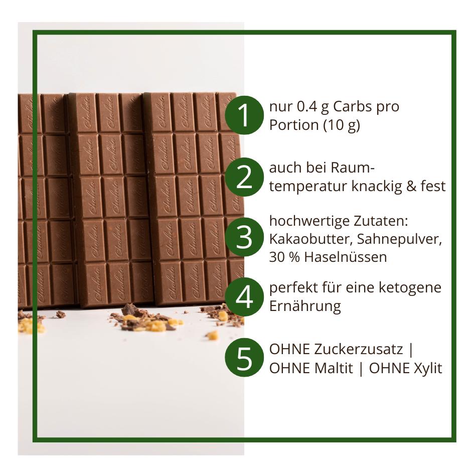 CHOKETO Low Carb & Keto Schokolade KARAMELLMILCH & HASELNUSS – 3 Tafeln – handgemacht – ohne Zuckerzusatz