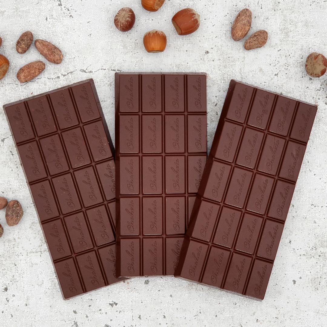 CHOKETO Low Carb & Keto Schokolade ZARTBITTER & HASELNUSS – 3 Tafeln – handgemacht