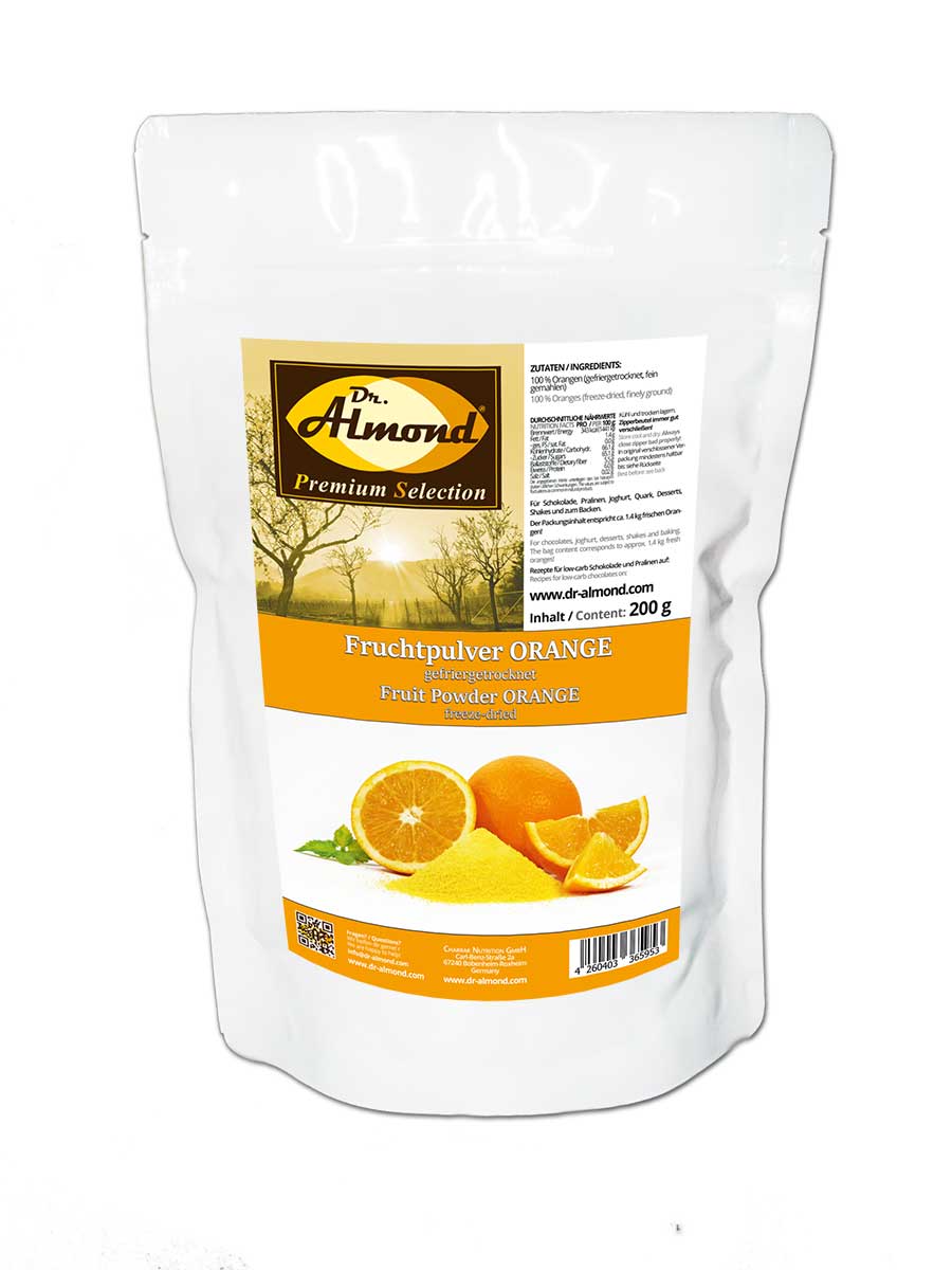 Fruchtpulver ORANGE gefriergetrocknetes Orangenpulver 200 g – 100 % Frucht für Fluff, low-carb Schokolade, Smoothies und Shakes