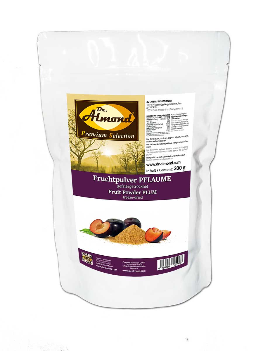 Fruchtpulver PFLAUME gefriergetrocknetes Pflaumenpulver Zwetschgenpulver 200 g – 100 % Frucht für Fluff, low-carb Schokolade, Smoothies und Shakes