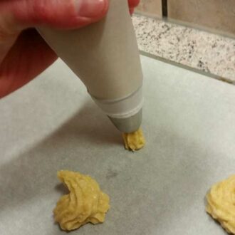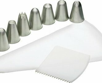In diesem praktischen Set bekommst du einen wiederverwendbaren Spritzbeutel, 7 verschiedene Spritztüllen aus Edelstahl und einen Teigschaber. Im Spritzbeutel kannst du die gesamte Teigmenge aus einem Brandteig-Grundrezept unterbringen.