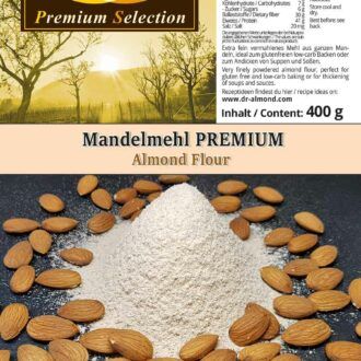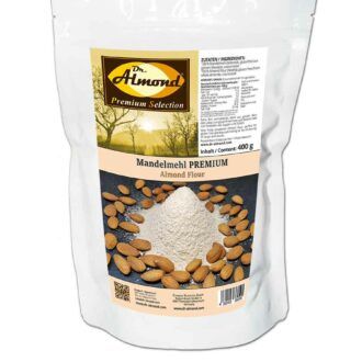 Artikelnummer: 059-03 Kategorien: Backzutaten, Nussmehle & Bindemittel Schlagwörter: Mandelmehl, Mandeln, MandelproteinUnser Mandelmehl PREMIUM wird durch schonende Kaltpressung aus ganzen, unblanchierten Mandeln gewonnen. Es ist extra fein vermahlen und zart aromatisch. Durch die Verwendung von ganzen Mandeln (inklusive der braunen Haut) ist der Ballaststoffanteil besonders hoch. Durch die besonders feine Vermahlung ist das Mehl trotzdem sehr hell.