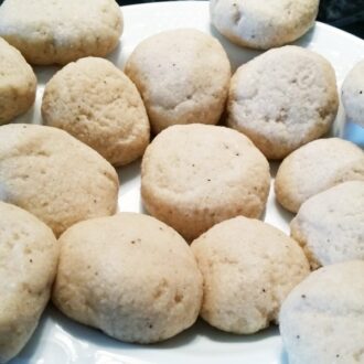 Ein süßer, weicher Mandelteig, der sich in wenigen Minuten zu köstlichen Mini-Berlinern frittieren lässt und den du wahlweise auch mit Hefe zubereiten kannst. Es wird keine Fritteuse benötigt – eine Pfanne ca. 1-2 cm hoch mit Fett füllen und loslegen!