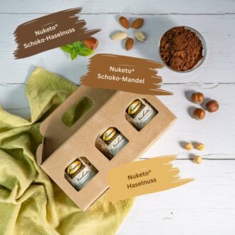 Probierset Nuketo HASELNUSS & MANDEL Gourmet Nougat-Creme low carb keto | 3 Sorten Aufstrich | ohne Zuckerzusatz | ohne Palmöl