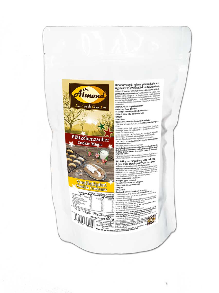 Plätzchenzauber Backmischung VANILLEKIPFERL Weihnachtskekse low-carb keto glutenfrei OHNE Zuckerzusatz