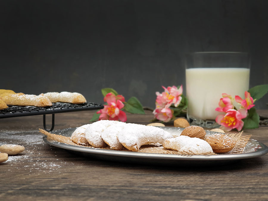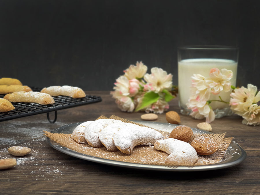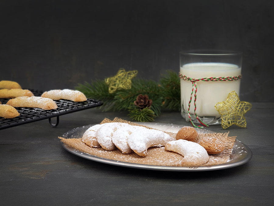 Fein-mürbe Vanillekipferl mit echter Bourbon-Vanille und zart-aromatischen Mandeln.