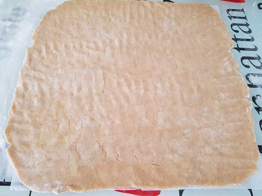 Der Teig wird mit etwas weniger Wasser und zusätzlich geschmolzener Butter und Low Carb Süße zubereitet und lässt sich dank der Bambusfaser, unserem neuen low carb Lieblingsmehl, problemlos millimeterdünn ausrollen.