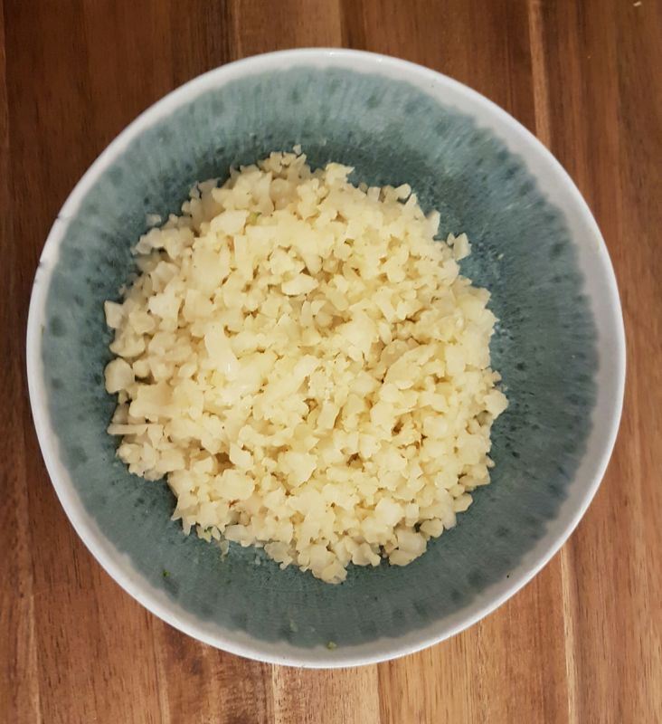 - Gedünsteten Blumenkohl und Broccoli zerkleinern und mit Butterschmalz(Ghee) anbraten, so dass keine Flüssigkeit mehr vom Dünsten vorhanden ist. In eine Schüssel geben.