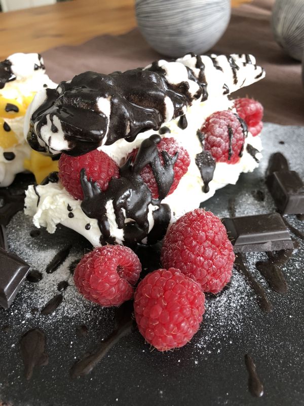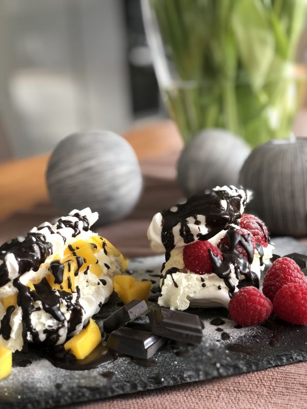 - Abkühlen lassen und nach Belieben weiter verarbeiten! Ihr könnt als Beispiel 2 Baisers mit Sahne und Früchten zusammensetzen - oder als Deko für Eis verwenden und und und! Lasst Euch was einfallen! Guten Appetit!