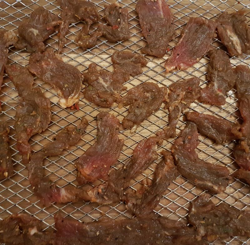 - Fleisch auf ein Gitter legen und 6,5 - 7 Stunden bei 50 Grad im Backrohr trocknen. Man kann natürlich auch einen Dörrautomaten benutzen.
