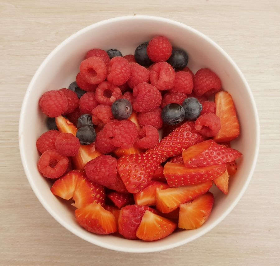 • Im Kühlschrank durchziehen lassen, mit Beeren servieren und genießen.