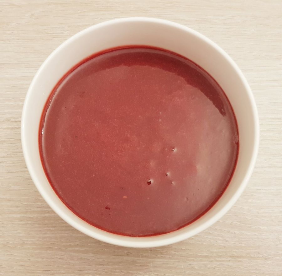 • Die Gelatine in 30 ml leicht kochendem Wasser auflösen und gut unter die noch warme Beerenmasse rühren.