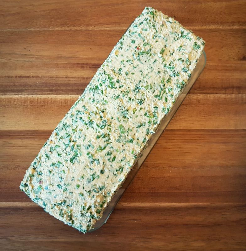 - Den fertig gebackenen Kuchen aus der Form nehmen und eine halbe Stunde auskühlen lassen. Danach mit 2/3 der kalten Kräutermasse einstreichen und 20 Minuten bei 180 Grad ins Backrohr geben.
