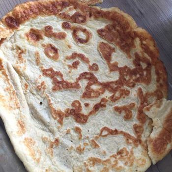- In eine Pfanne (Größe ca. 24cm) etwas Butterschmalz (Ghee) geben und auf mittlere Hitze erwärmen. 1/6 des Pfannkuchenteiges in die Mitte der Pfanne geben und mit einem Spatel langsam bis zum Rand verteilen. Langsam anbacken, bis der Teig Bläschen wirft. Pfannkuchen wenden und fertig backen. Ich habe aus dem Teig 6 Pfannkuchen rausbekommen.