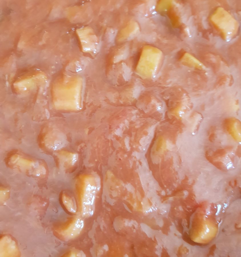 - Eine Mischung der Erdbeer- und Rhabarbercreme herstellen! Habe die Creme beim Herstellen nur grob püriert, damit sie stückig bleibt!