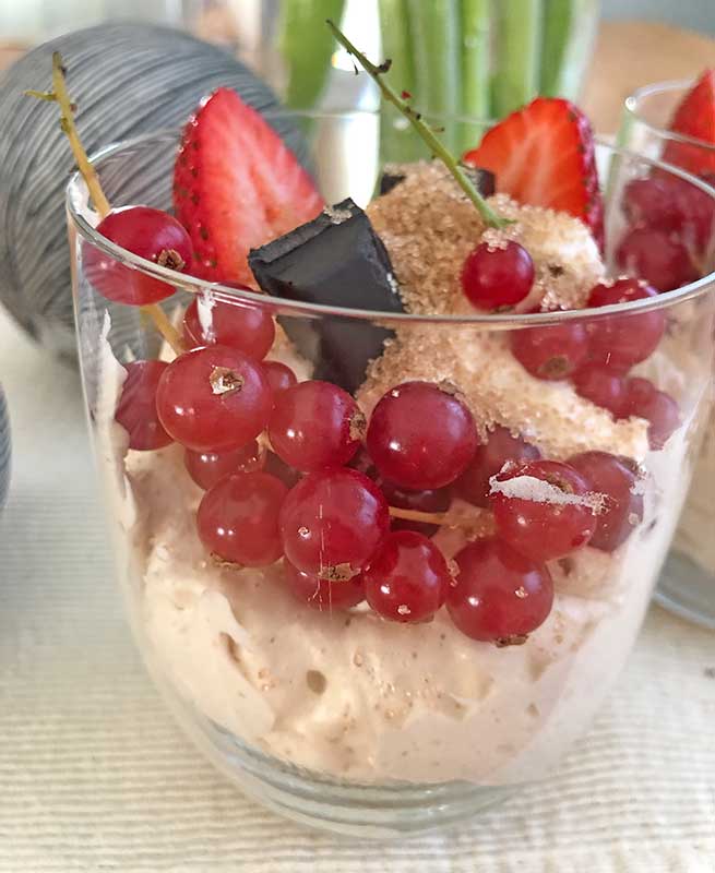 Grundlage für viele leckere Dessertideen z.B. mit frischen Früchten! Der Espressofluff hat NUR 16 Kcal und 0.3 g KH pro Portion!