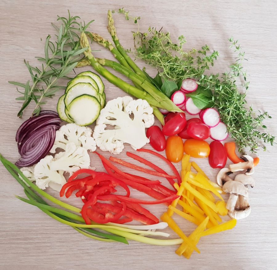 - Gemüse und Kräuter nach Wahl gewaschen und geschnitten