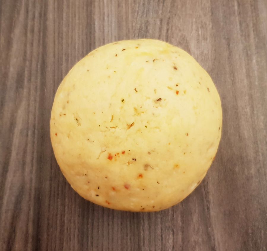 - Aus dem Mandelteig, Eier, Magerquark, Öl, Wasser und Gewürzen einen Teig zubereiten. Den Teig 20 Minuten ruhen lassen.