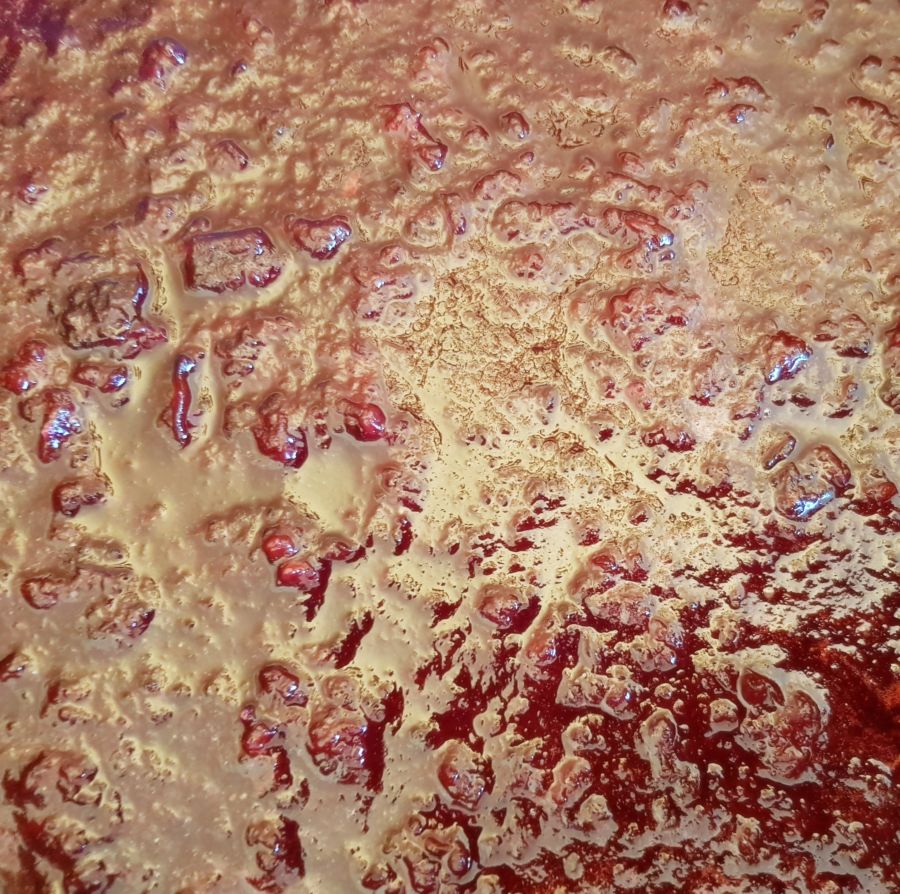 • Vom Herd nehmen, etwas abkühlen lassen und 24h im Kühlschrank ziehen lassen.