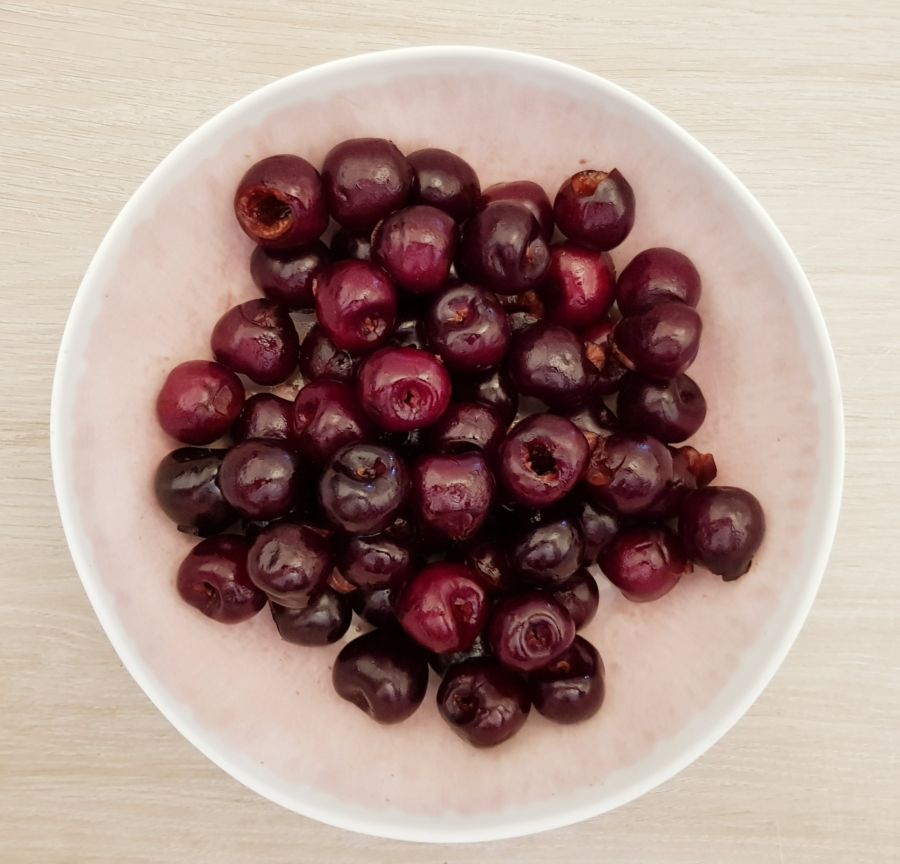 • Kirschen waschen und entkernen.