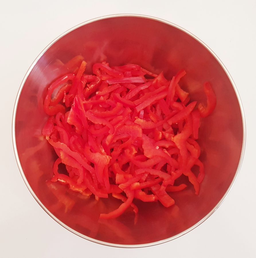 - 60 g Paprika rot in Streifen geschnitten