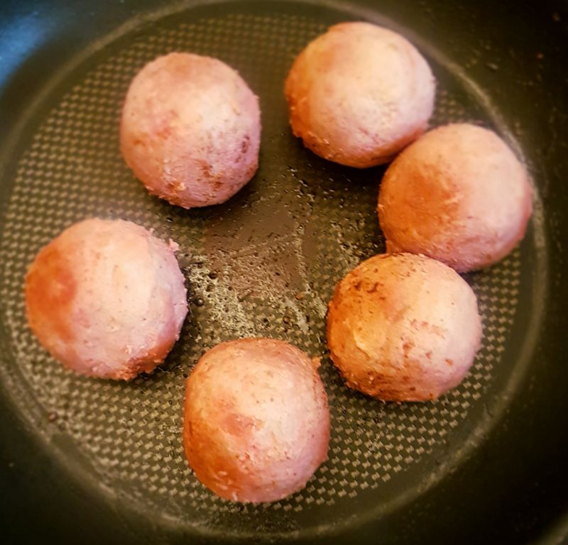 • Knödel auf ein Tuch legen. In einer Pfanne etwas Butter schmelzen lassen und die Knödel 5 Minuten in der Pfanne leicht anbräunen. Danach sofort in der Vanillietraum/Fruchtpulvermischung wälzen.