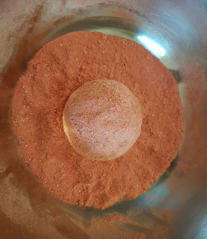 • Mascarpone, Eier, Butter gut verrühren. Fruchtpulver in die Masse sieben, Kuchenzauber und Zitrusfaser unterheben und zu einem kompakten Teig verkneten.
