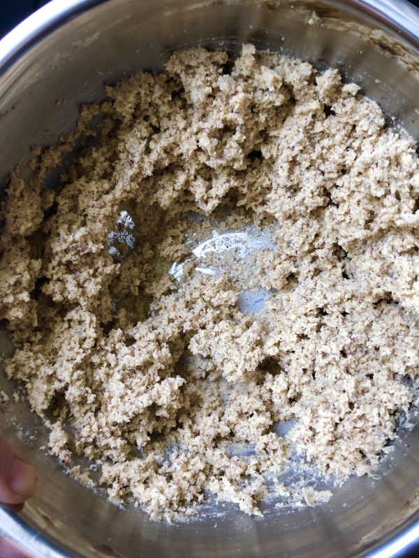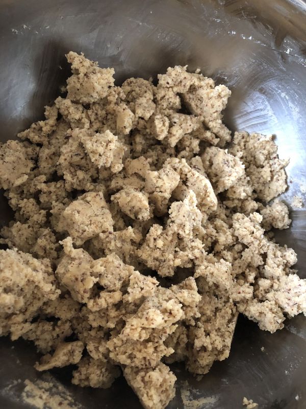 • Für die Streusel den Weihnachtszauber, das Ei und die Butter gut verkneten. Ca. 1 Stunde in den Kühlschrank stellen.