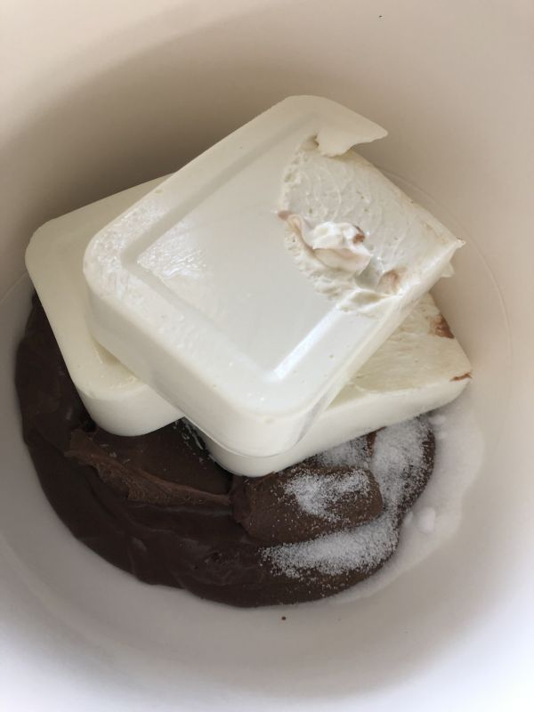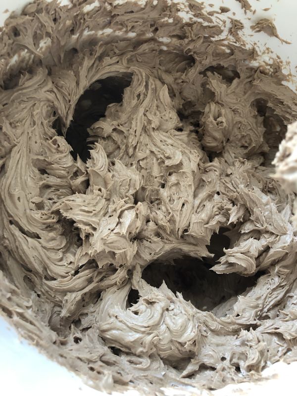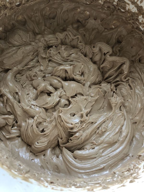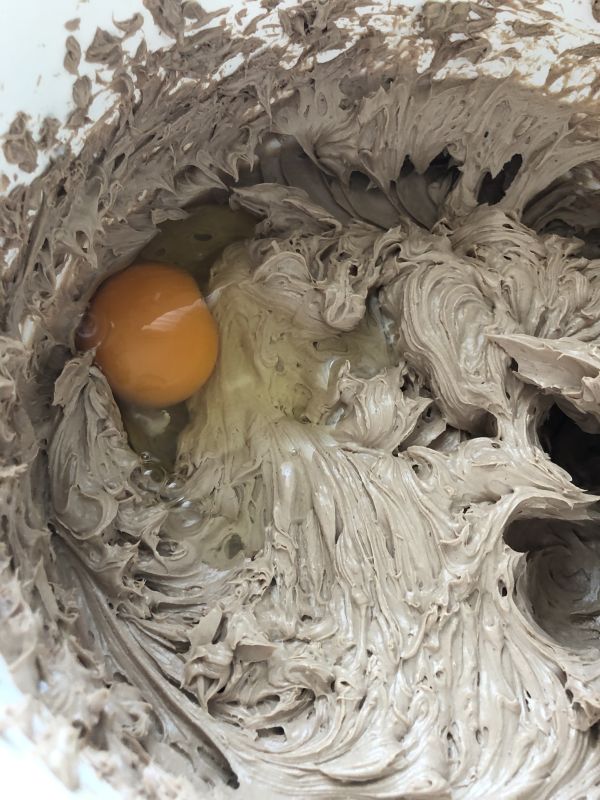 • In der Zwischenzeit Nuketo, Frischkäse und die Süße gut verrühren. Die Eier einzeln unterrühren.