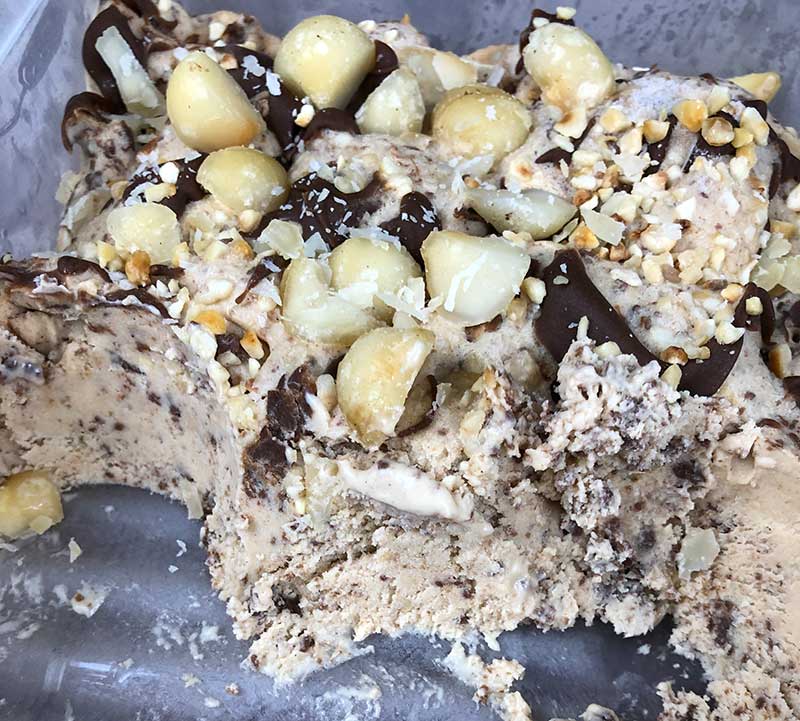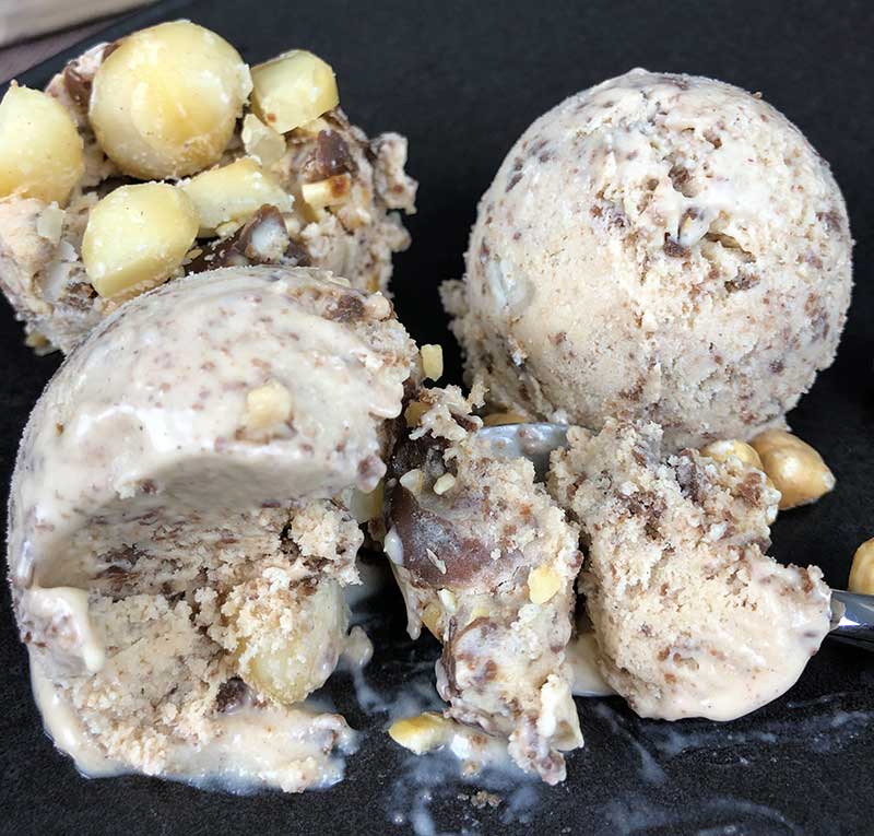 Herrlich nussiges Eis mit knackigen NUKETO Splittern! Das Eis hat pro Portion (100g) NUR 2g KH - also perfekt auch für eine ketogene Ernährung!