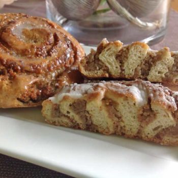 - Man kann die Schnecken am Schluss noch mit Karamellzauber bestreuen und mit flüssiger Butter ODER mit einer Glasur aus Erythritpuder und Zitronensaft. Schmeckt alles sehr lecker!
