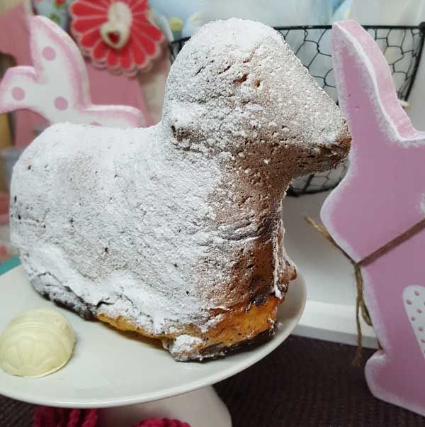 - Die Massen abwechselnd in die Osterlammform schichten.