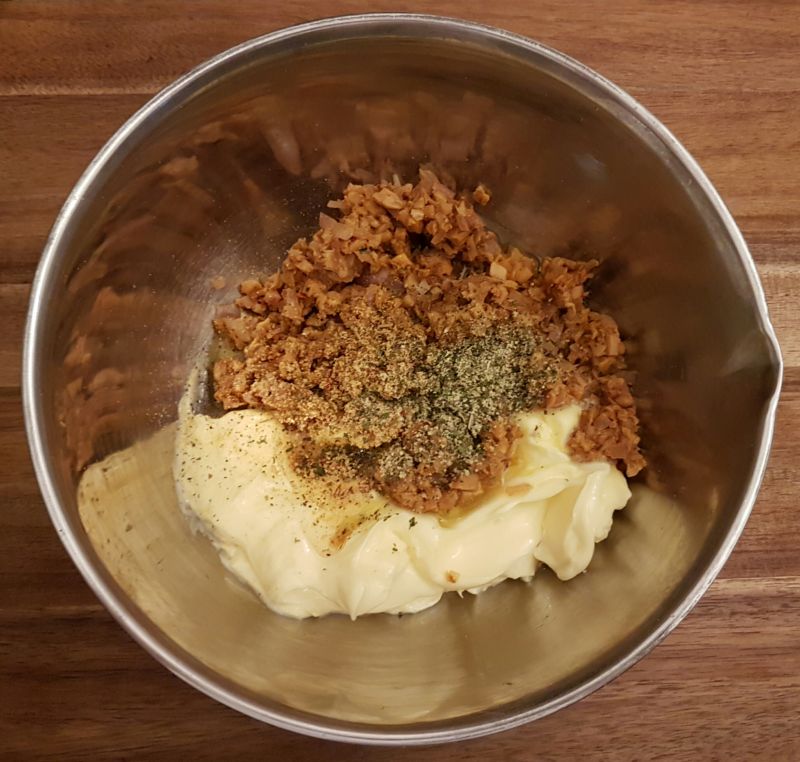 - In eine Schüssel geben, salzen und den geschnitten Schnittlauch untermischen. Die Mischung kalt werden lassen (Sehr wichtig!)