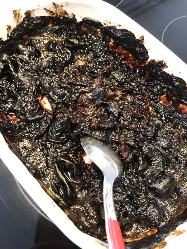 - Danach den Karamelltraum über die Früchte geben und kurz verrühren. Wieder ca. 100 Minuten weiter einkochen lassen bis sich fast der komplette Saft verkocht hat. Die Masse wird dabei fast schwarz und legt sich auch an der Seite der Form an - soll auch so sein!