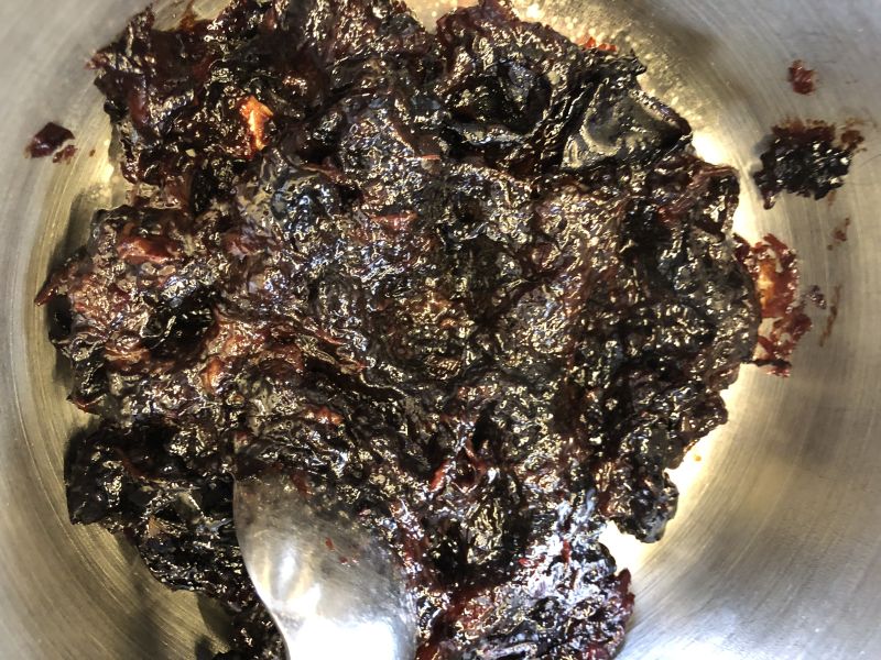 - Ist der Saft fast verkocht, gibt man die Masse am Besten in einen kleinen Topf und rührt mit einem Löffel den Schnaps (oder Rum) und das Gewürz unter. Alternativ kann man etwas Apfelsaft einrühren, wenn man es geschmeidiger will.