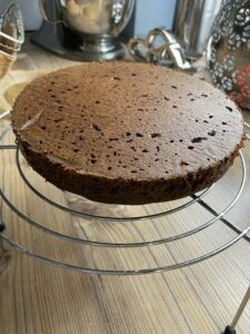 - Torte 2-3 Stunden in den Kühlschrank stellen, damit Marmelade in Kuchen einziehen kann und gut abkühlt.