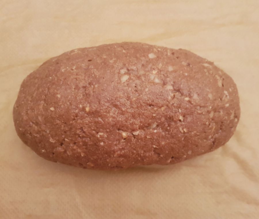 • Mit feuchten Finger einen Brotlaib formen und mit den restlichen Nüssen bestreuen, bei 175 Grad 60 Minuten backen.