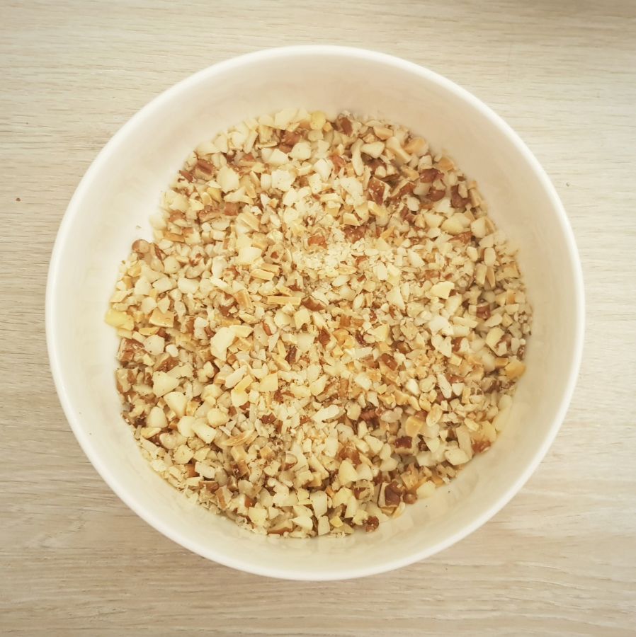• In der Zwischenzeit die Nüsse hacken und 2/3 davon mit der Brandteigmischung vermengen, Wasser und Pure Flavour dazugeben und zu einem Teig verarbeiten. Mit dem Knethacken vom Mixer einmal kurz durchkneten.