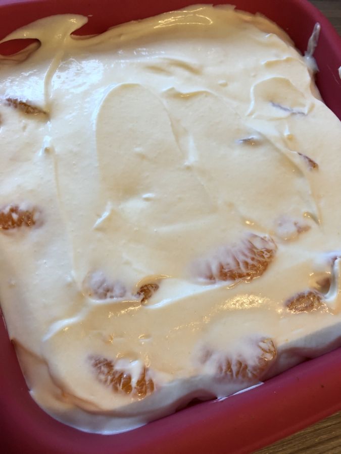 - Nun etwa 4 EL der Quarkmasse mit Hilfe eines Schneebesens mit der aufgelösten Gelatine verrühren. Diese Masse dann zügig unter den Rest der Quarkmasse rühren! Mandarinen unterheben! IMMER diese Vorgehensweise einhalten, dann klappt es auch mit Gelatine!