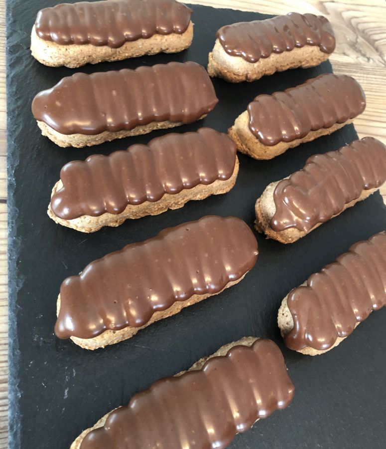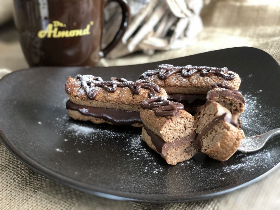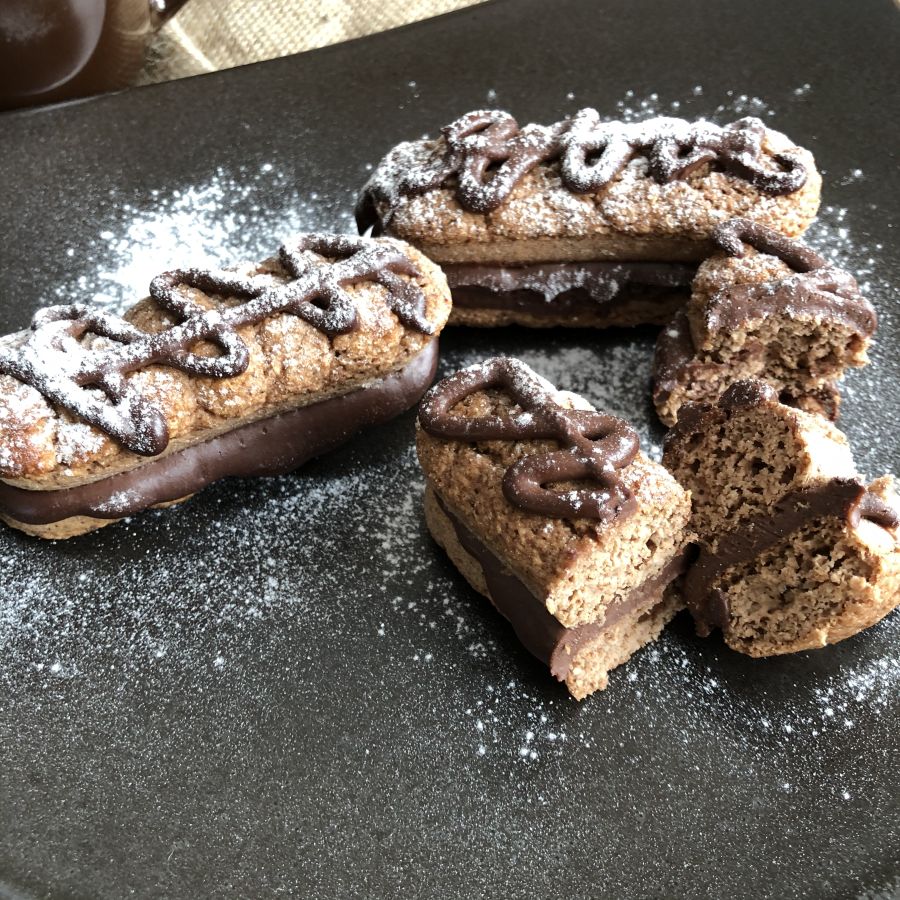 Luftig lockere Spekulatiusbiskuits mit einer herrlichen Füllung aus Schokolade und Sahne mit Weihnachtsgeschmack! Pro Stück nur 3g Kohlenhydrate!