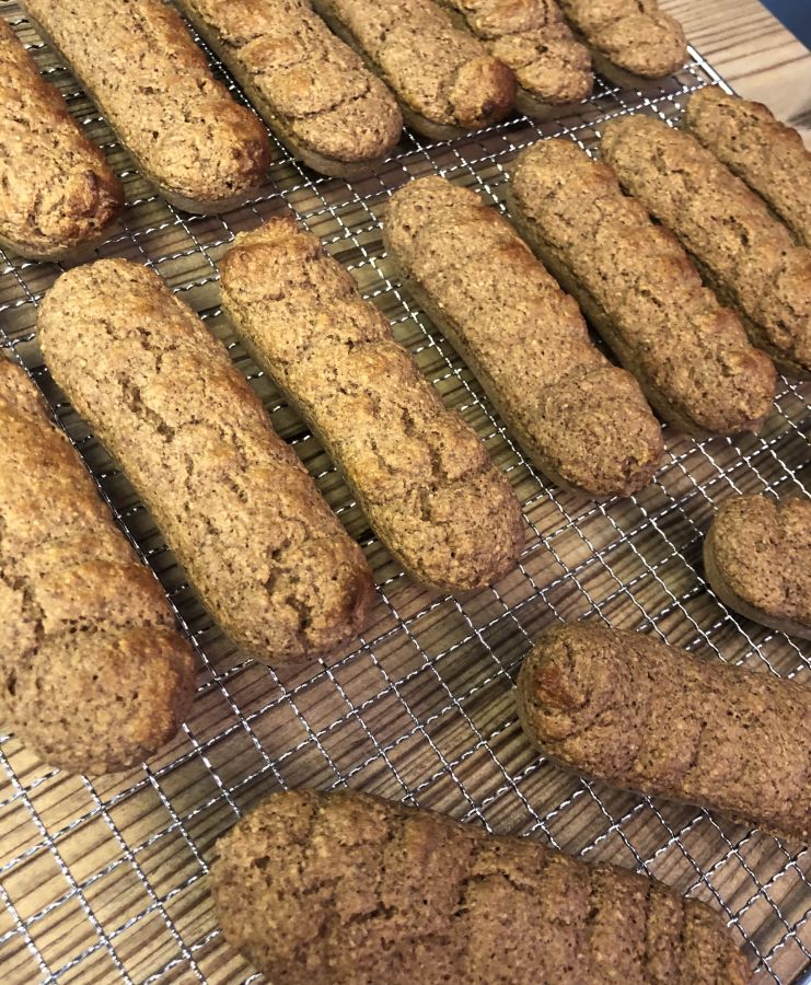 - Die fertigen Löffelbiskuits aus der Form nehmen und etwas abkühlen lassen.