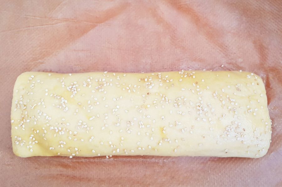 - Alle Zutaten für den Teig gut vermengen. Teig zwischen zwei Backpapier ausrollen. Die Ränder mit Ei bestreichen und 1cm breit einschlagen. Die Spinat Feta Mischung aufstreichen, nicht über den Rand hinausstreichen. Den restlichen Feta zerbröselt aufstreuen und sehr eng aufrollen. Den Strudel mit Ei bestreichen, mit Zahnstocher etwas einstechen und mit Sesam bestreuen. Bei 170 Grad 45 Minuten backen.
