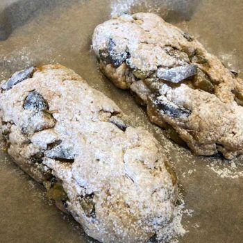 - Die 200 g Düsseldorfer Stutenbrot und den Zitronenabrieb zur Hefelösung geben und so lange rühren, bis ein gleichmäßiger Teig entstanden ist. Die marinierten Zwetschgen unterziehen.