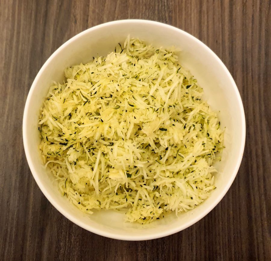 - Die Zucchini gut ausdrücken und erst zum Schluss untermengen.