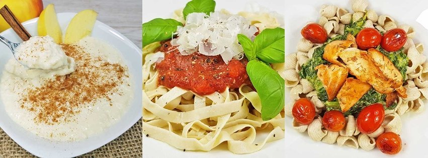 2 Jahre und über 700 Versuche brauchte es für eine weitere Premiere 2018: die erste glutenfreie low-carb Pasta der Welt, die wie Weizenpasta schmeckt! Mit unserem Pastazauber, einer Fertigmischung für selbstgemachte Pasta, lassen sich Spaghetti, Nudeln, Lasagne und Spätzle mit weniger als 0.6 g Kohlenhydraten und nur 106 kcal auf 100 g herstellen. Auch bei unserer Pasta wollten wir keine Kompromisse eingehen und verzichteten daher konsequent auf den Einsatz schwer verdaulicher Mehle aus Hülsenfrüchten oder Konjak. Auf Basis von proteinreichem Mandelmehl, hochwertigem Eiklarprotein und kohlenhydratfreien Pflanzenfasern entwickelten wir zwei Sorten Pastazauber: Classico und Rusticale. Mit beiden Sorten lassen sich mit handelsüblichen Küchengeräten zur Pastaherstellung jeder gewünschten Pastaform zaubern. Bandnudeln gelingen sogar einfach per Hand.