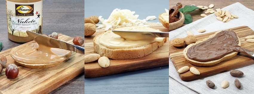 Seit 2019 gibt es unsere Nuketo® Brotaufstriche: Himmlisch zartschmelzende und hocharomatische Gourmet-Nougat Cremes in verschiedenen Sorten wie Haselnuss, Mandel, Kokosnuss und Pistazie. Bei den Kompositionen aus köstlichem Nussmuss und hochwertigen Ölen aus Kokosnuss und Butter verzichten wir selbstverständlich auf Palmöl und minderwertige Füllstoffe.